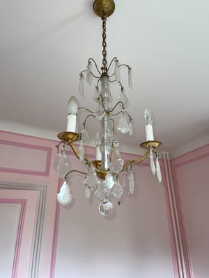 Petit lustre en métal doré et pampilles à trois lumières Mod…
