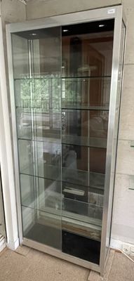 Vitrine en aluminium brossé, deux portes coulissantes en ver…