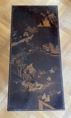 Table basse rectangulaire en laque, plateau à décor de paysa…