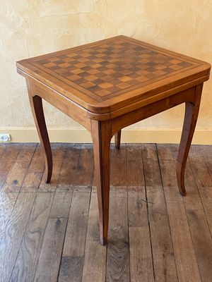 Table à jeux en bois naturel, à plateau déployant XIXème s.