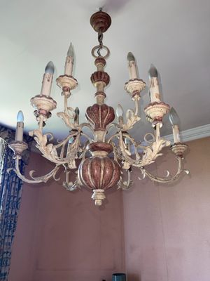 Lustre en bois et métal à douze lumières sur deux rangs Diam…