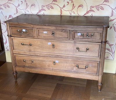 Commode en bois naturel mouluré ouvrant à cinq tiroirs sur t…