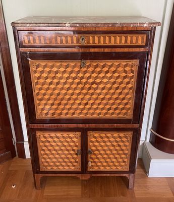 Secrétaire droit, figurant un semainier, dessus de marbre Fi…