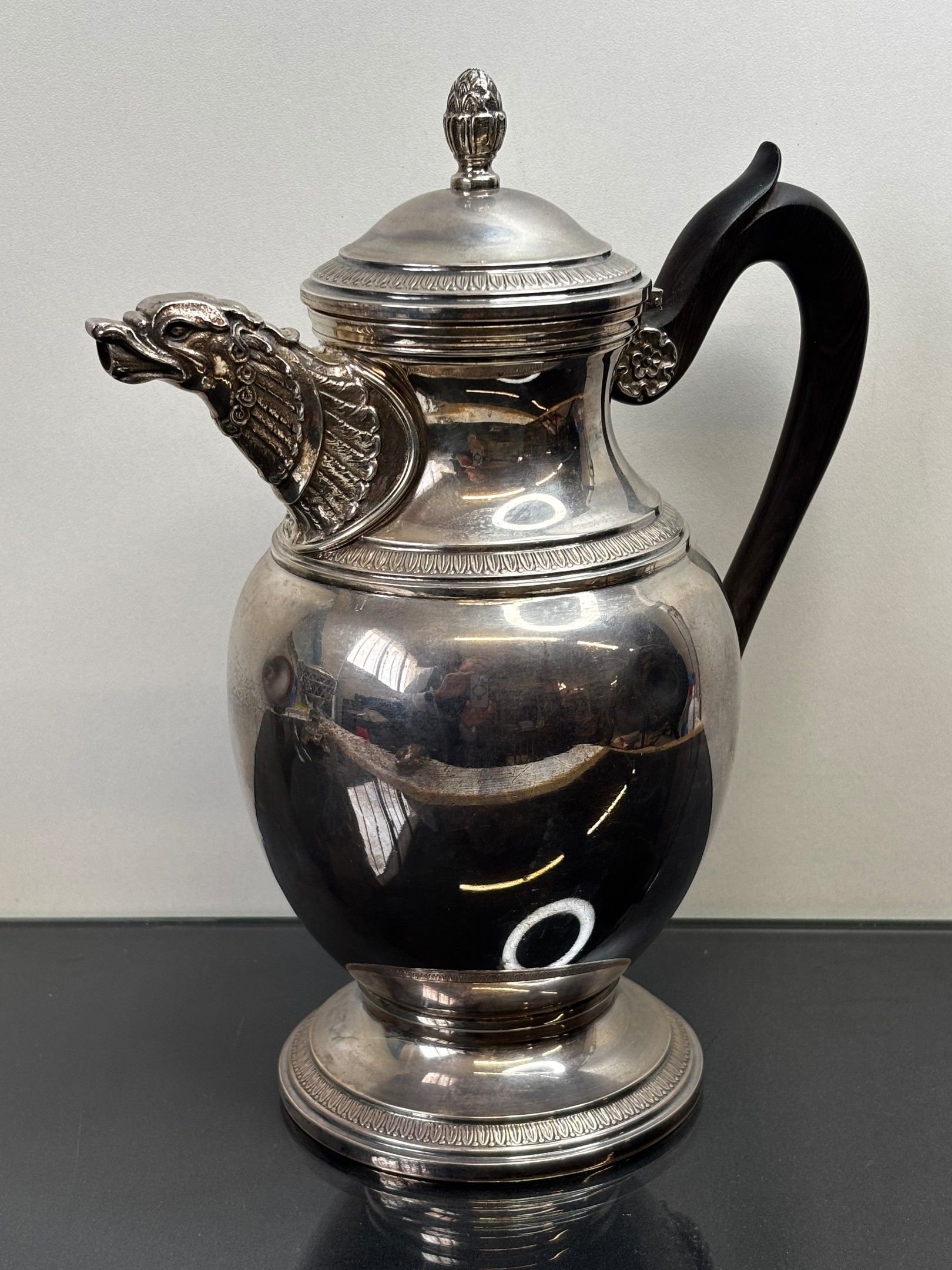 VERSEUSE en argent uni et ciselé de frise de feuilles d'eau, le bec zoomorphe et la prise en grenade. Anse en bois noirci.
