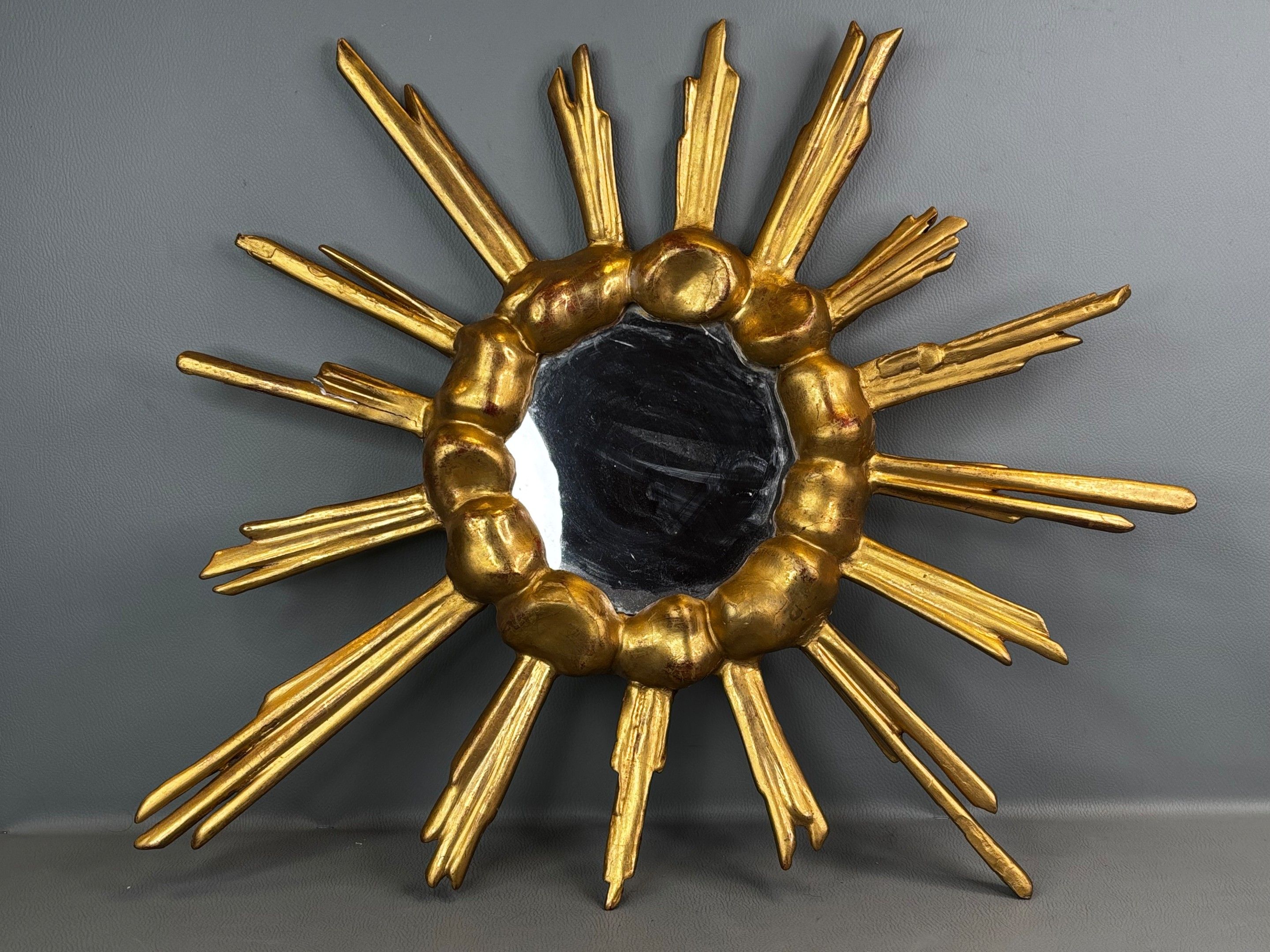 MIROIR soleil en bois doré (probablement d'un retable à l'origine)