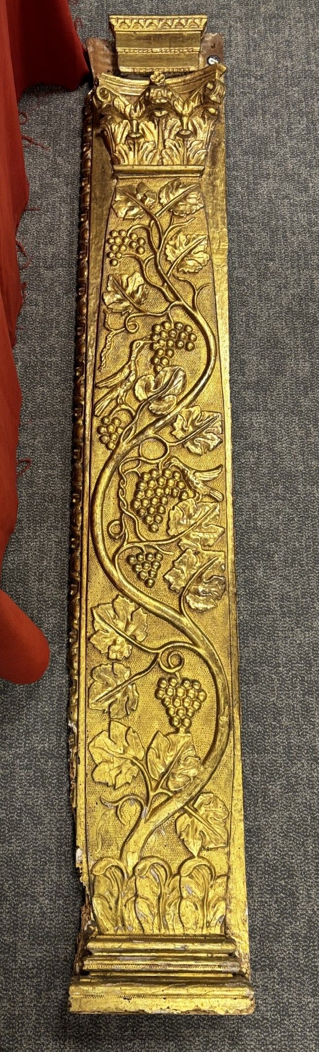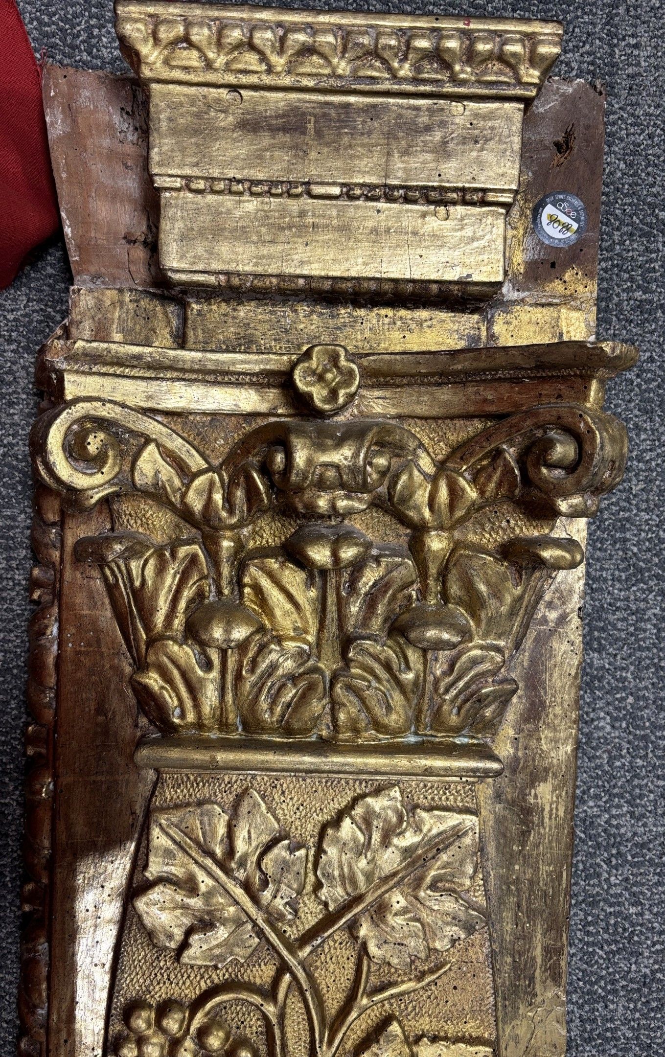PILASTRE à chapiteau Corinthien en bois redoré et pampres de vigne