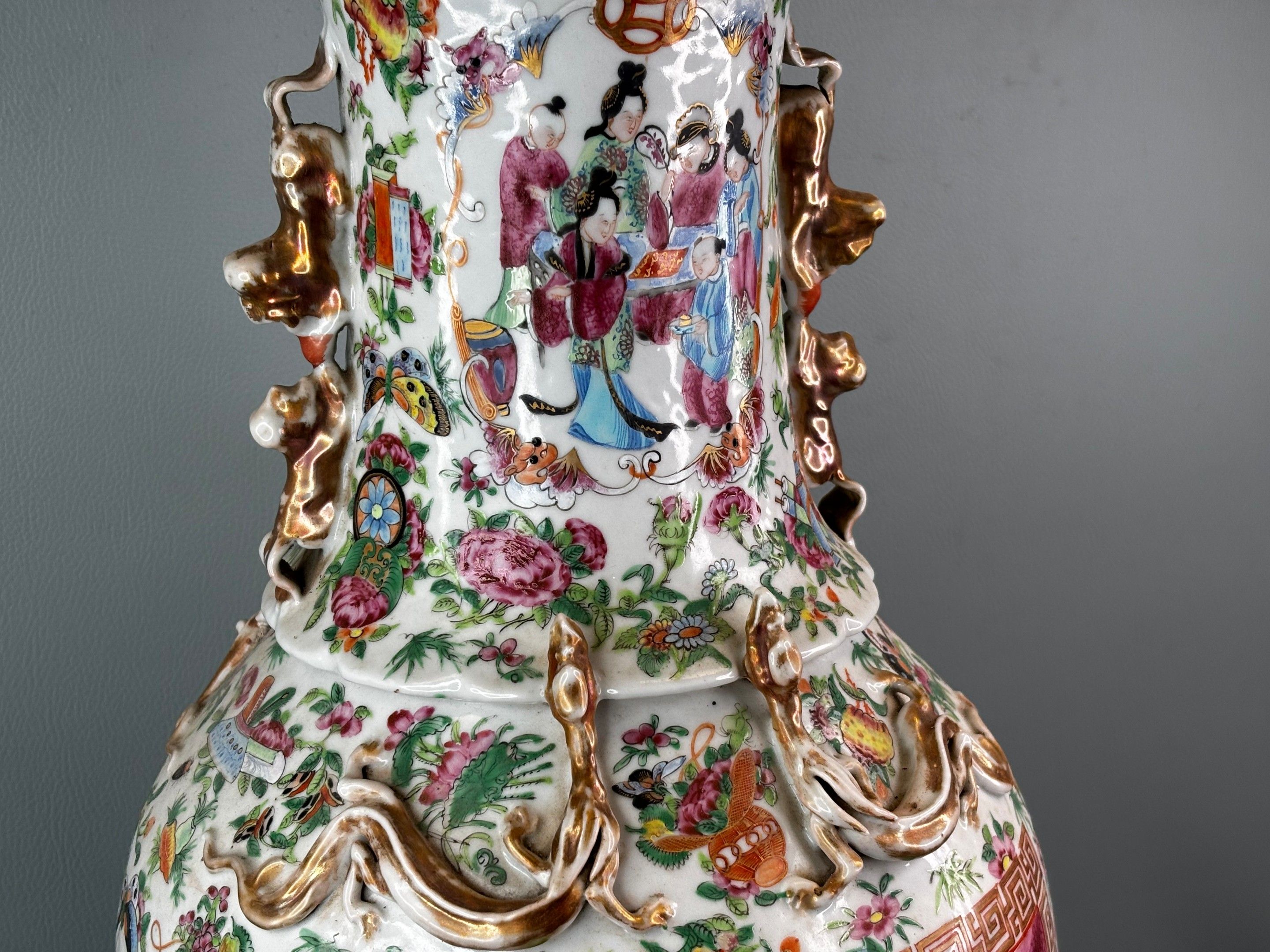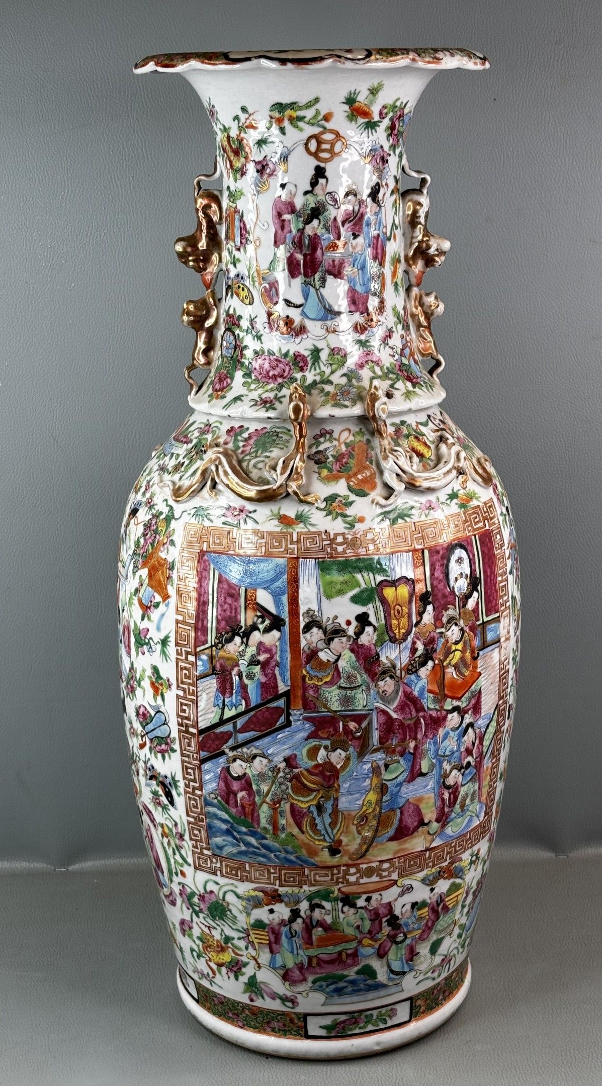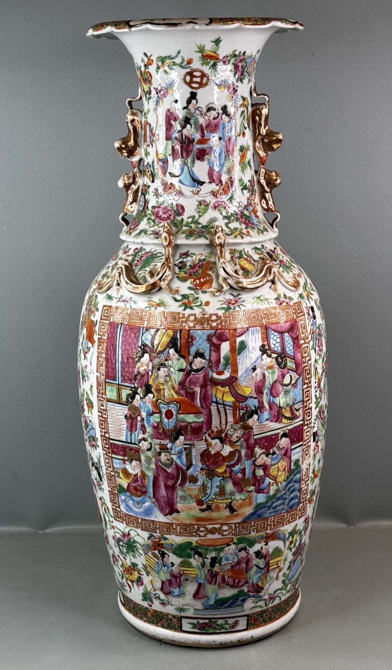 CHINE-CANTON Grand vase balustre en porcelaine à décor polyc…