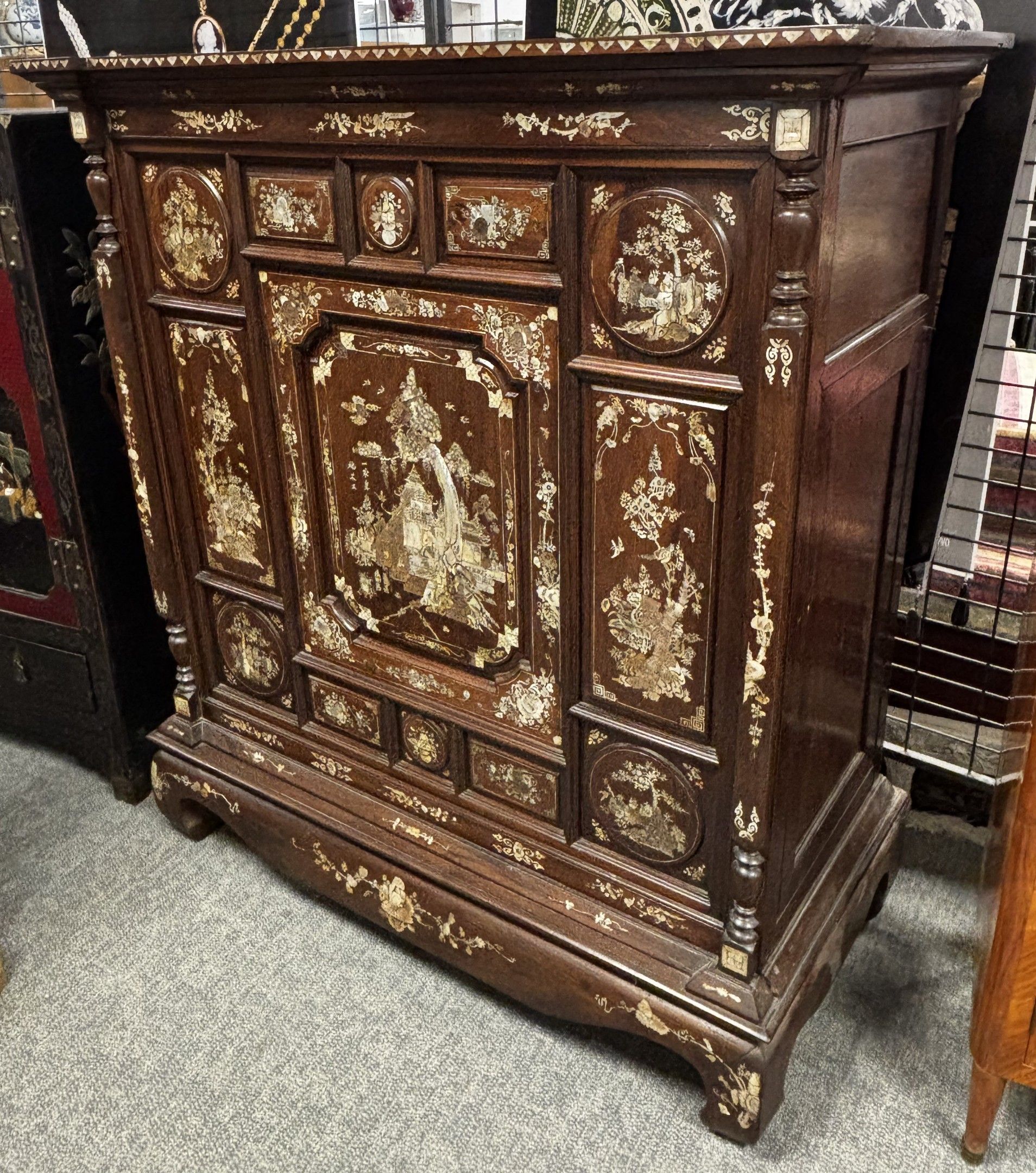 CABINET en bois exotique à décor incrusté de nacre gravé d'u…