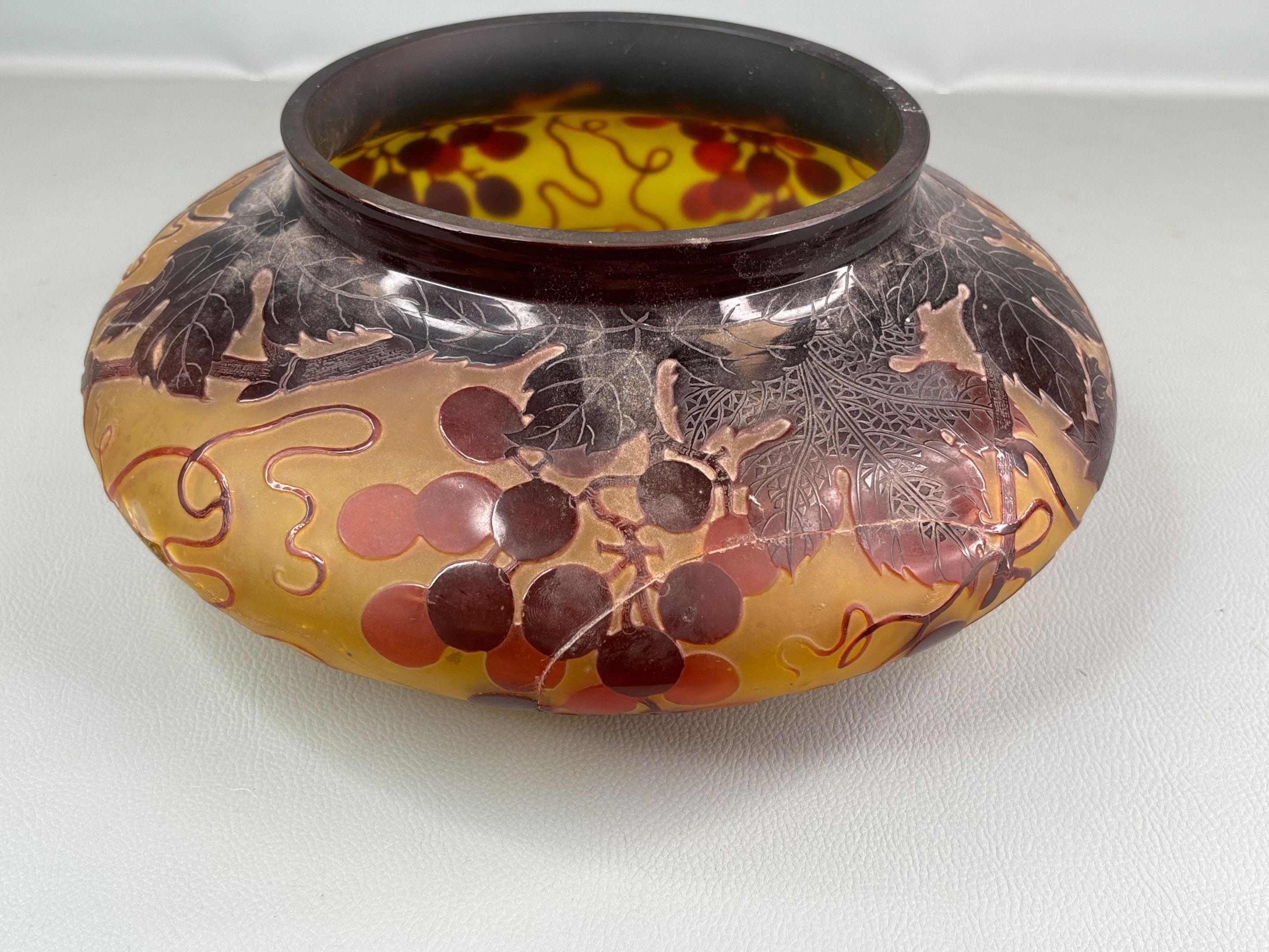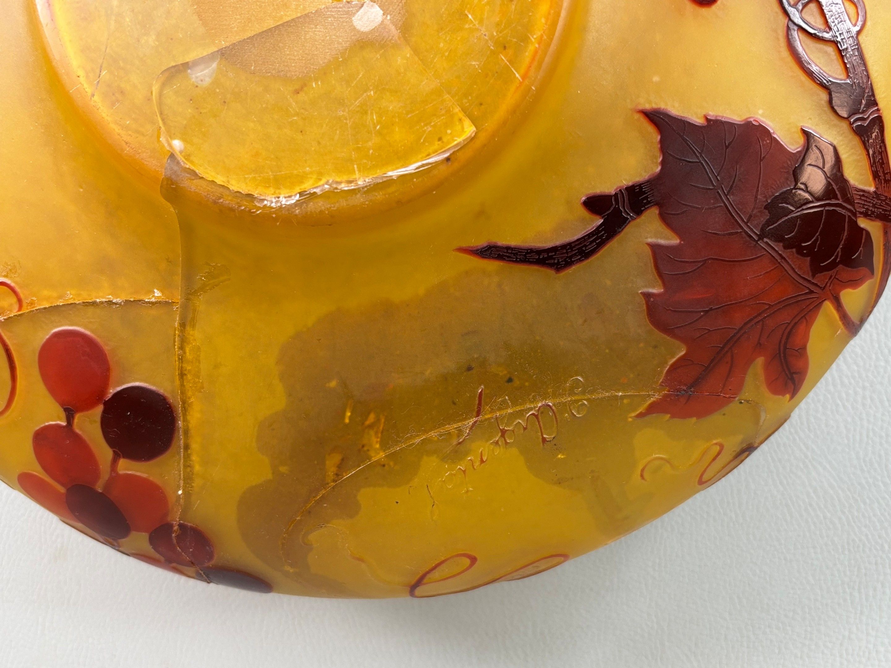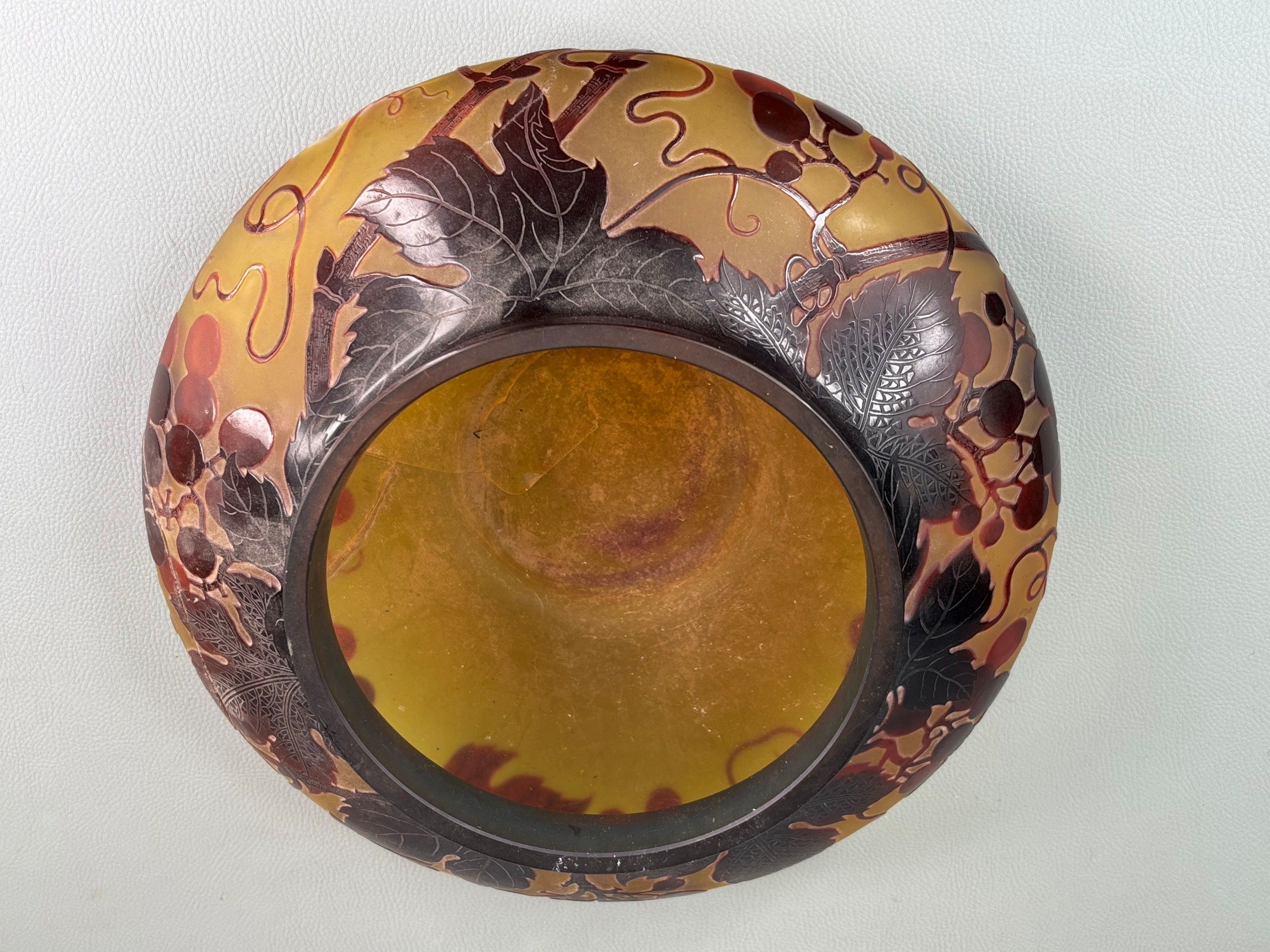 Grande coupe en verre à décor floral gravé à l'acide ; signée (accidents ; dans l'état).