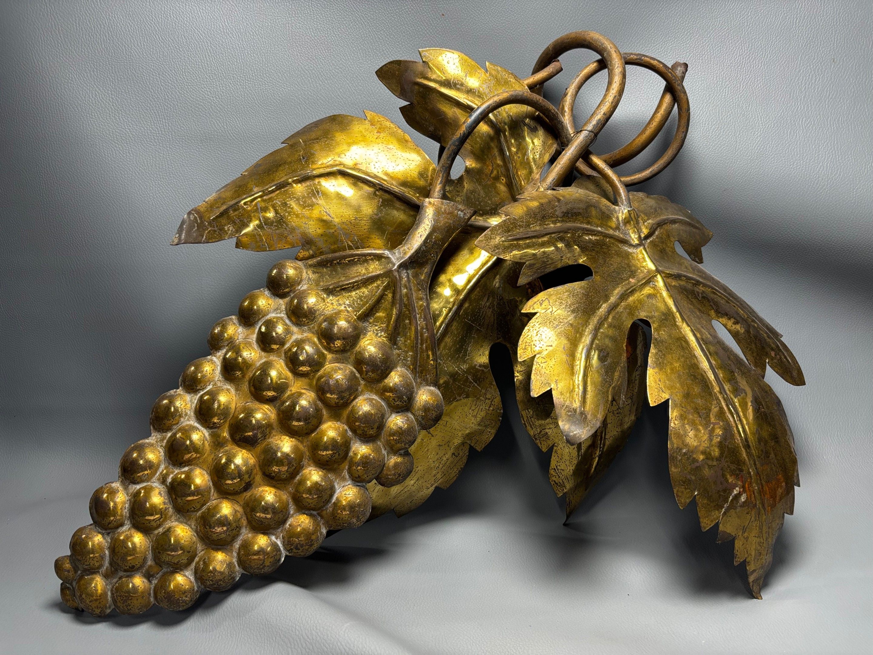 DEUX feuilles de vigne et une grappe de raisins en cuivre doré