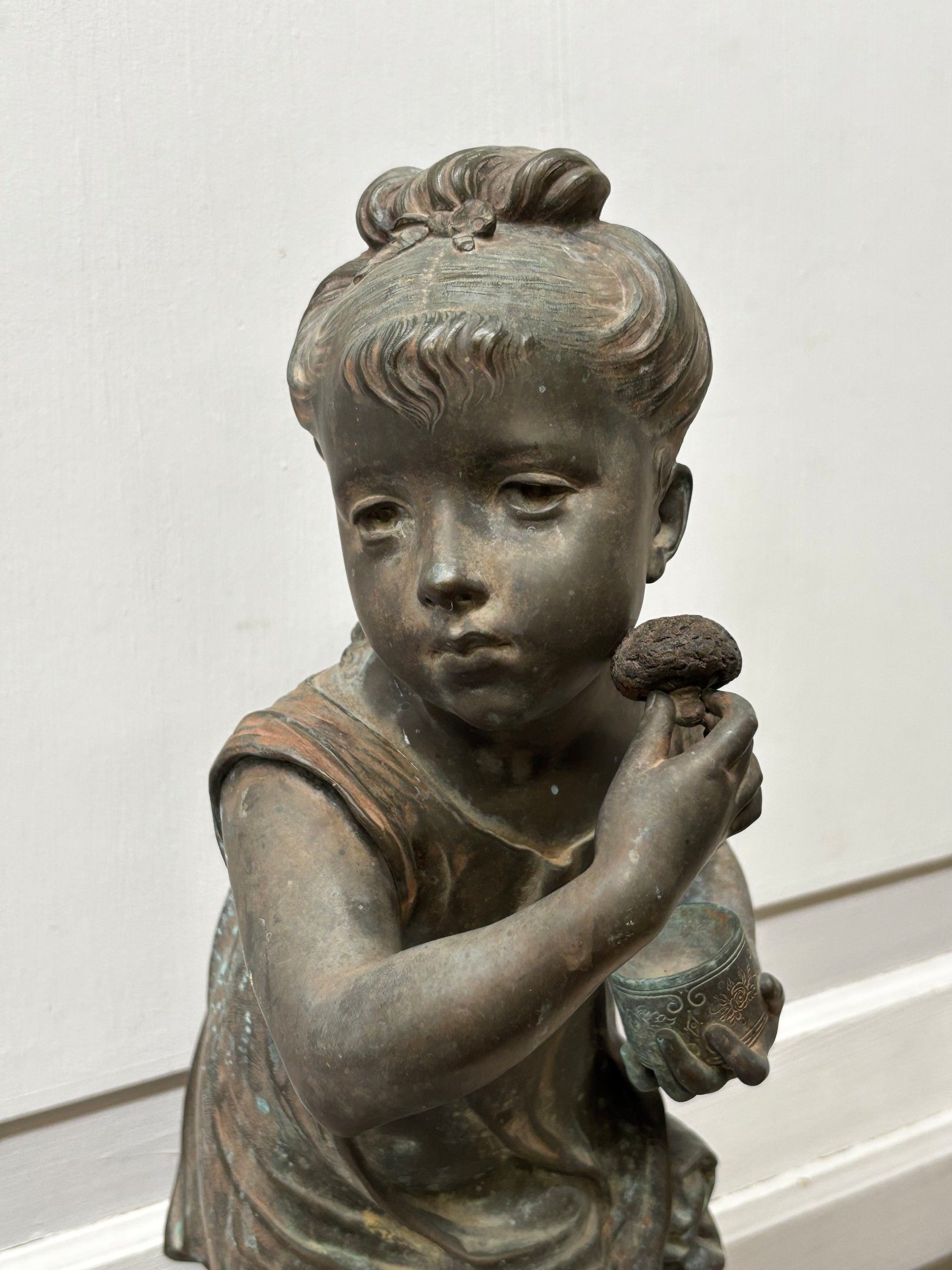 FILLETTE se poudrant Sujet en bronze