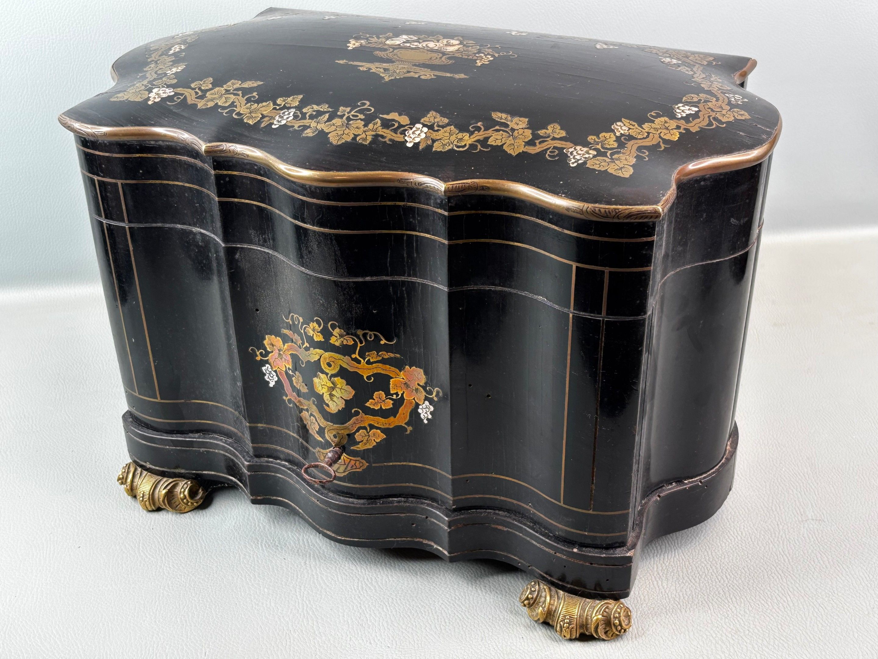 CAVE à liqueurs en bois noirci et incrustations de laiton et…