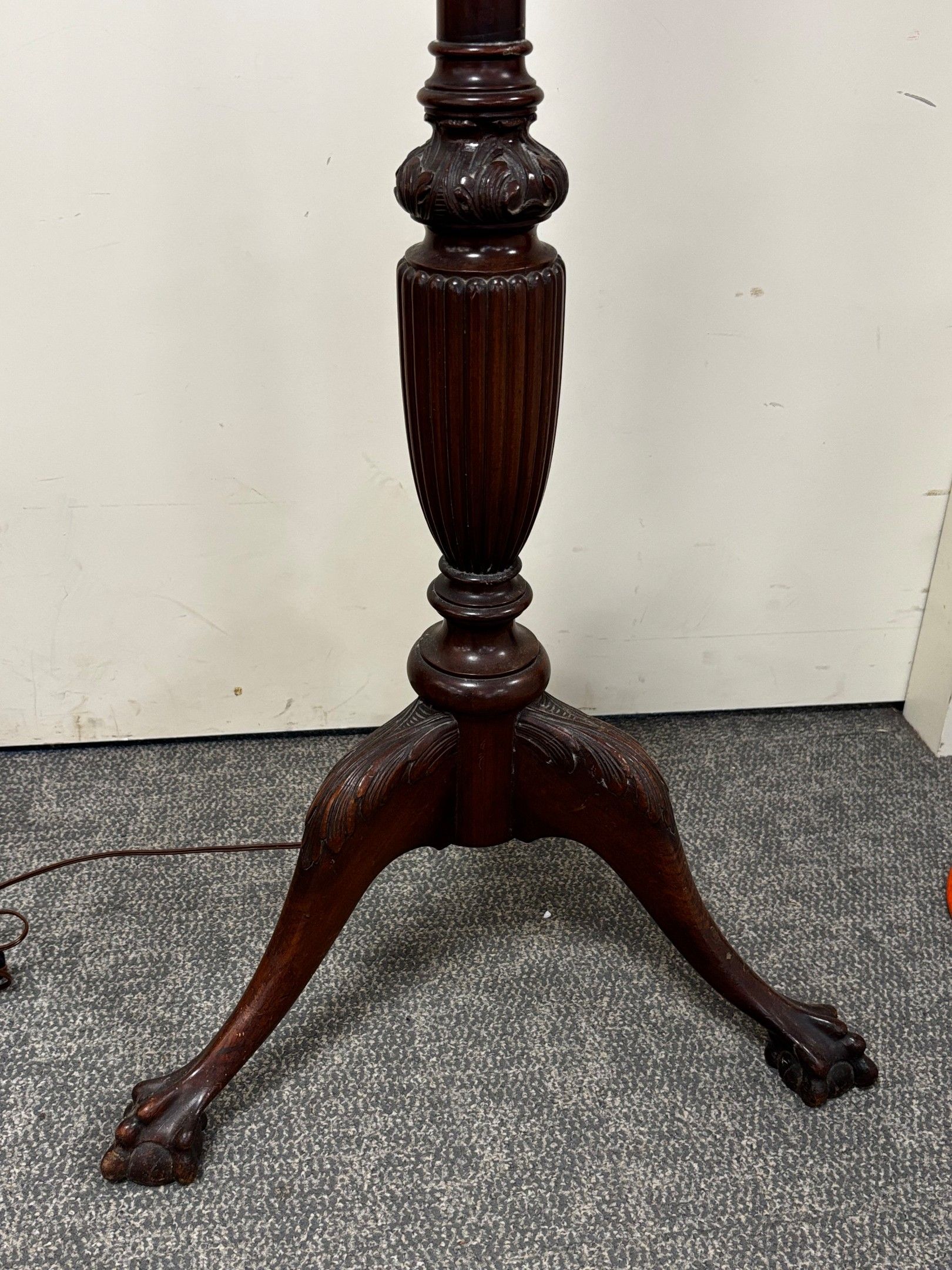 LAMPADAIRE à fût en acajou sculpté à pied tripode « clock & …