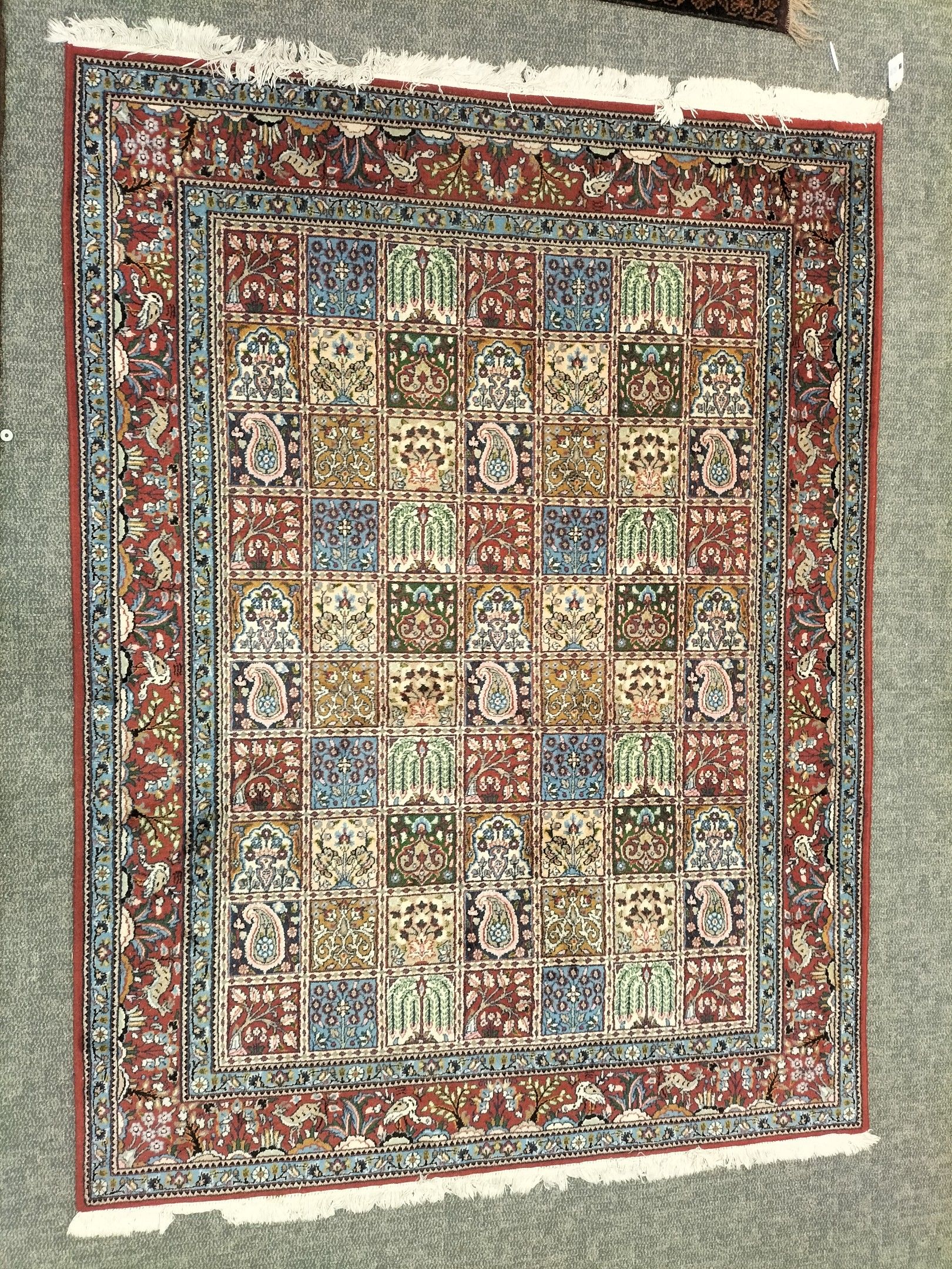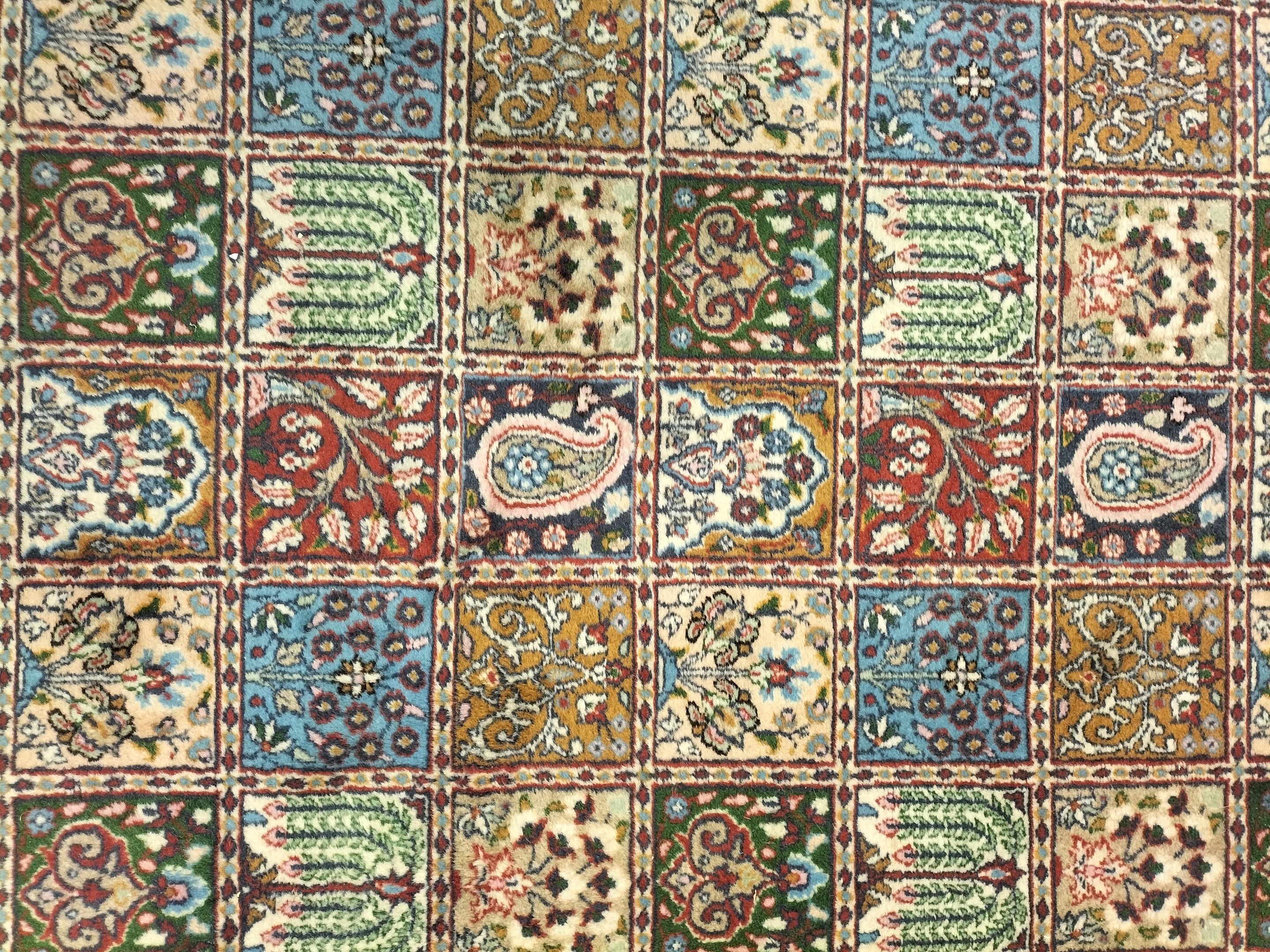 TAPIS en laine à caissons à décor de botehs, rinceaux