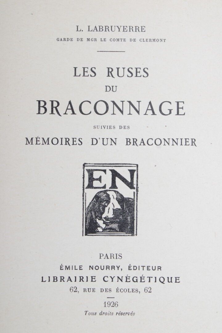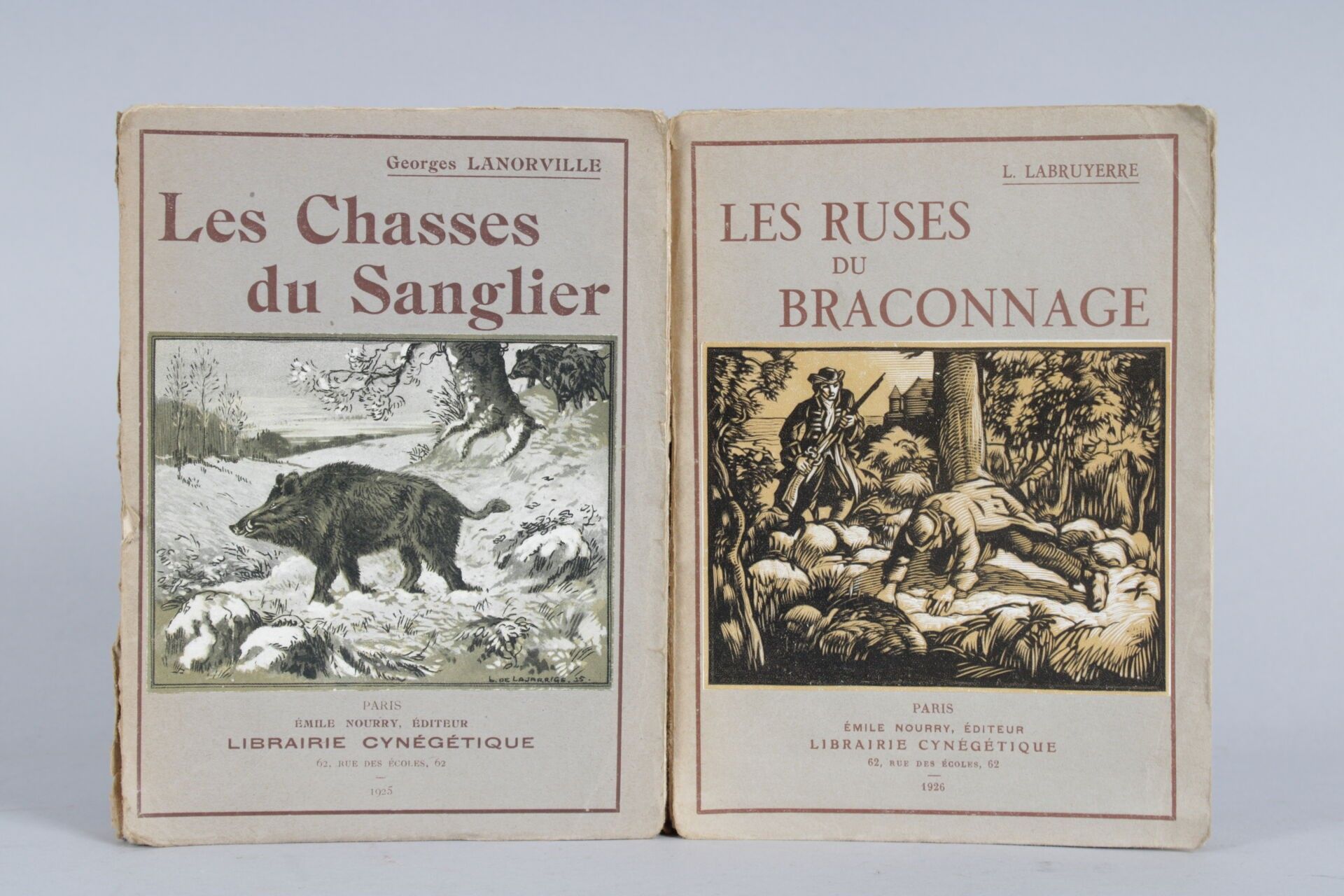 CHASSE, 2 vol. in-8° br. : LANORVILLE : les chasses du sanglier, Paris, 1925 ; LABRUYERE : les ruses du braconnage. Paris, 1926