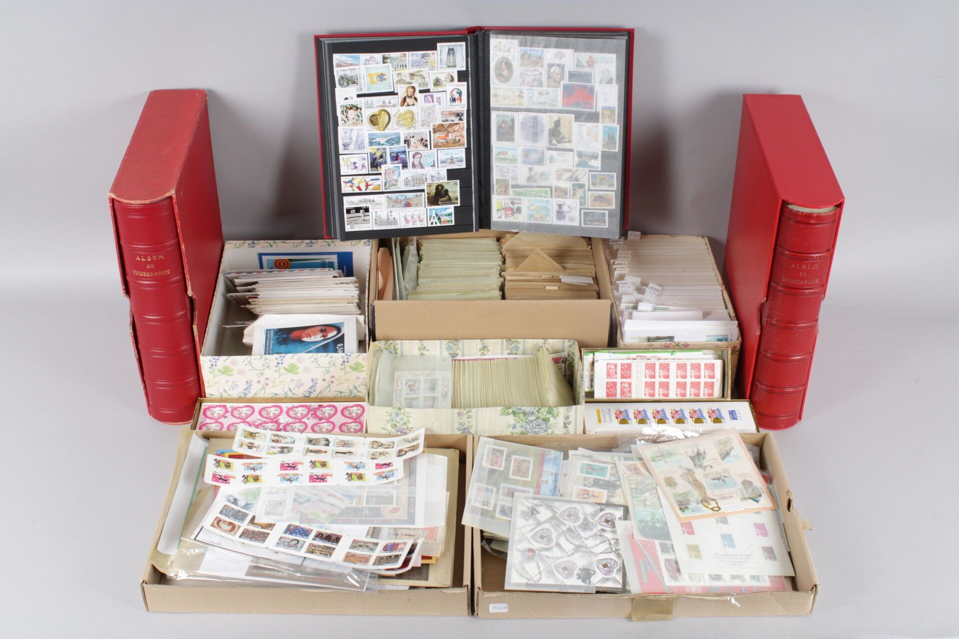 P.A B.F carnets on y joint un stock de neufs par multiples présenté en 2 boîtes classées par numéros dont carnets et BF et abonnement jusqu'en 2021 ** et une collection de Premier Jours de France en 1960 et 1994.