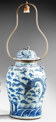CHINE Potiche couverte en porcelaine à décor en bleu sous co…