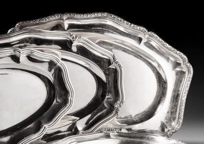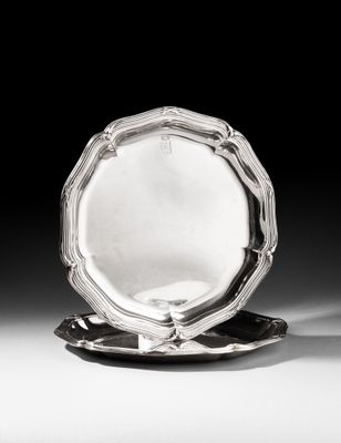 Paire de plats circulaires en argent, modèle à bord filet co…