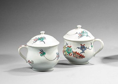 CHANTILLY Deux pots à crème couverts en porcelaine tendre à …