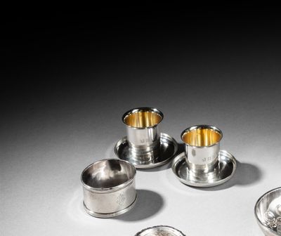 Lot en argent, comprenant un coulant de serviette, deux verr…