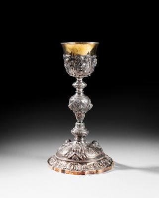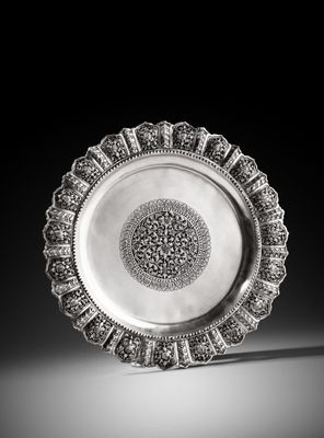 Plat circulaire en argent, décor au repoussé de fleurs et de…