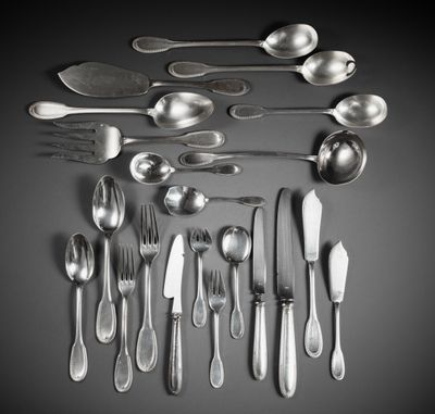 Ménagère en argent, modèle filet godronné, comprenant 8 four…