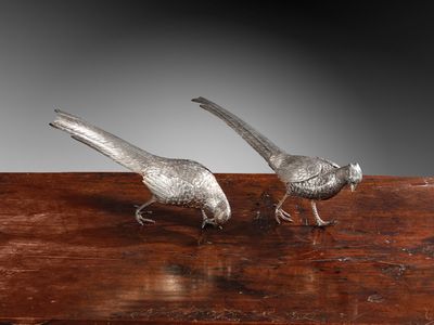 Paire de faisans en argent ciselé Poinçon minerve 1er titre