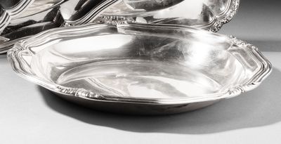Plat oblong en argent, modèle à bord filet contour orné d’un…