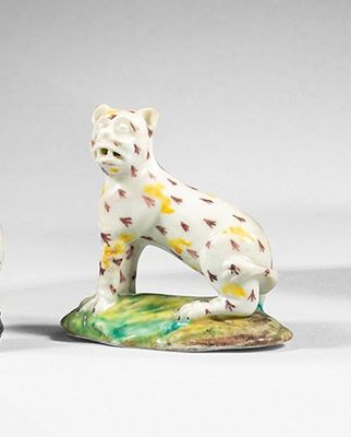 MENNECY Statuette représentant un léopard assis sur une terr…