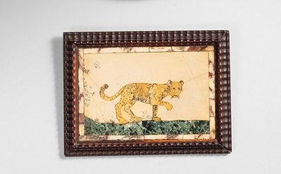 Plaque rectangulaire en marqueterie de pierres dures et paés…