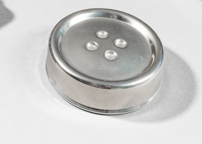 CHRISTIAN DIOR Boîte circulaire en métal argenté simulant un…