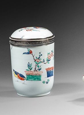CHINE Pot à sucre couvert en porcelaine à décor polychrome d…