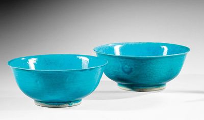 CHINE Deux bols en porcelaine émaillée bleu turquoise XVIIIe…