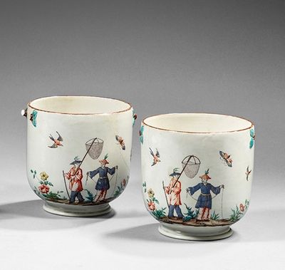 CHANTILLY Paire de seaux à verre en porcelaine tendre à émai…