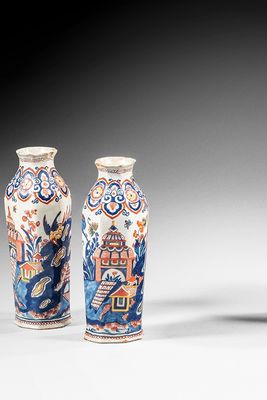 DELFT Paire de vases à pans coupés de forme octogonale à déc…