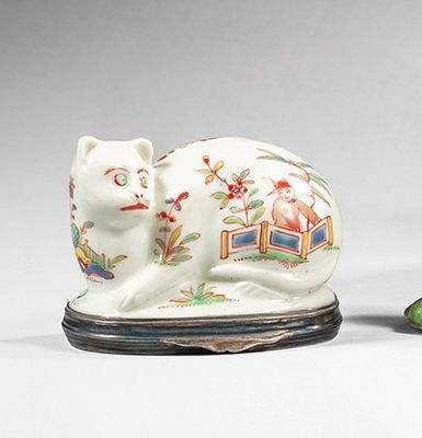 SAINT-CLOUD Tabatière couverte en porcelaine tendre et verme…