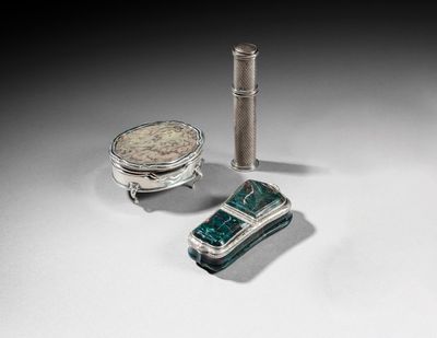 Ensemble de deux petites boîtes en pierre dure montées en ar…