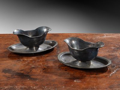 Paire de saucières en métal argenté, modèle à plateau adhére…
