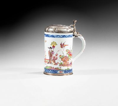MEISSEN Chope en porcelaine à décor polychrome dans le style…