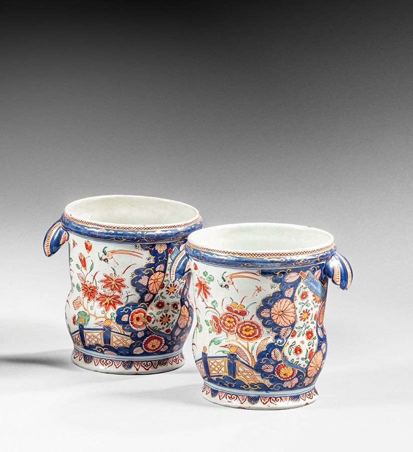 DELFT Paire de seaux à verre en faïence à décor polychrome d…