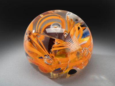 Les pièces en verre de Murano se distinguent par leurs couleurs vives, leurs inclusions de bulles ou de filigranes, et sont parfois attribuées à Venini, Barovier & Toso, Seguso ou Salviati. Côté verrerie française, on retrouve des œuvres de Daum, Lalique, Baccarat, Legras, Muller Frères, Schneider ou Saint-Louis, mêlant techniques de pâte de verre, gravure à l’acide, émaillage, ou verre multicouche.