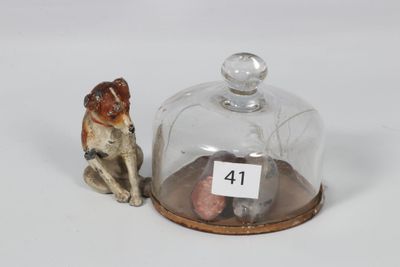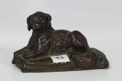 Bronze de Vienne polychrome présentant un chien assis à côté…