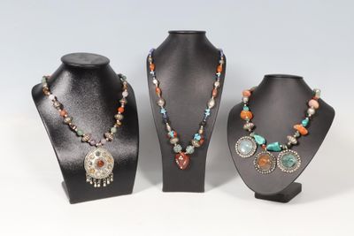 Ensemble de trois colliers ethniques dont perles en métal ar…