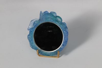DAUM Petit miroir entourage en pâte de verre bleue figurant …