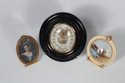 Ensemble comprenant 1 miniature ovale portrait de jeune fill…