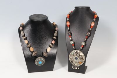 Ensemble de deux colliers ethniques dont perles en métal arg…