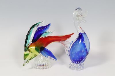 Murano Deux sujets en verre soufflé dont un canard et un poi…