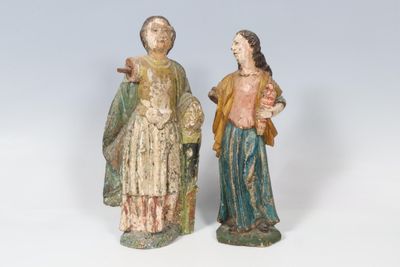 Paire de statues religieuses en bois sculpté polychromé acci…