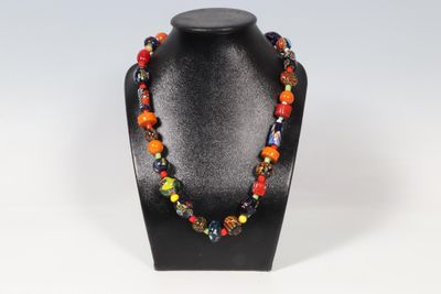 Murano Collier de larges perles de verre de formes et couleu…