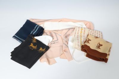 CELINE 5 foulards en soie dont décor de calèche